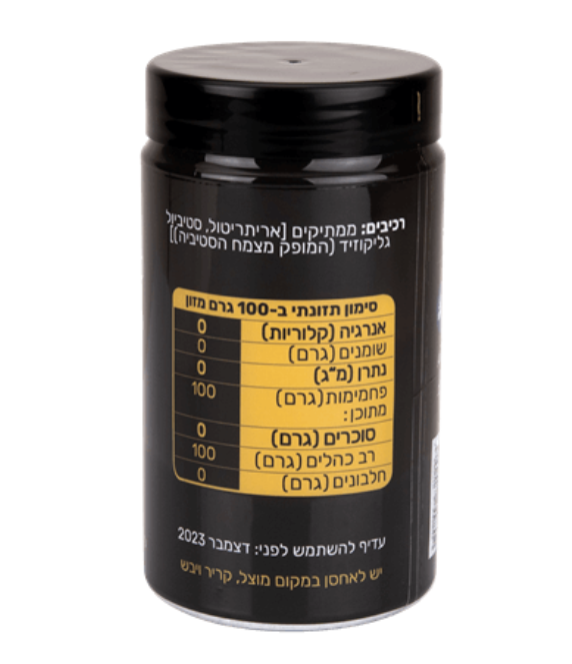 תחליף סוכר עשוי מרכיבים טבעיים על בסיס אריתריטול וצמח הסטיביה.