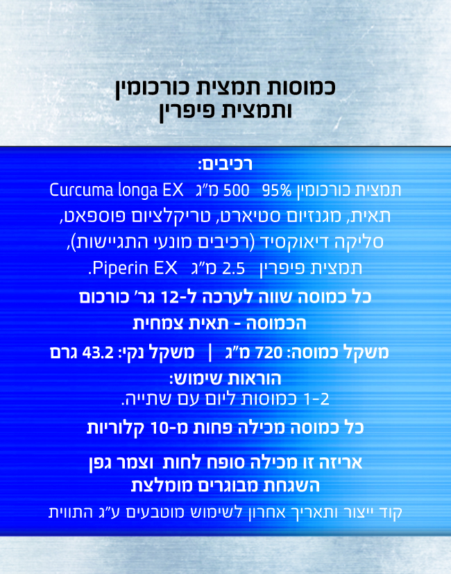 אינו מכיל: סוכר, מלח, עמילן, שמרים, חיטה, גלוטן, תירס, סויה, חלב, ביצים, או חומרים משמרים.