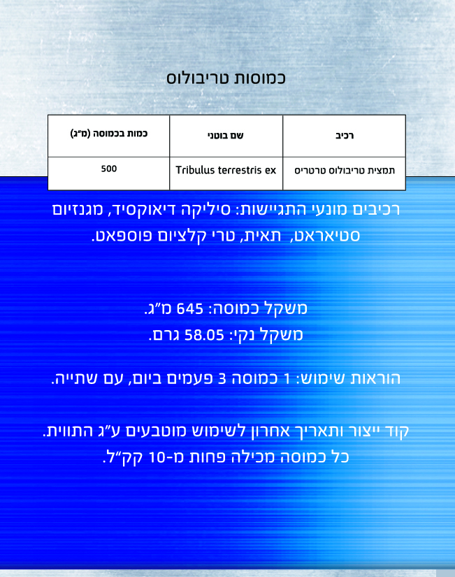 - טריבולוס יעיל בהתמקדות, תמיכה וחיזוק של מערכת הרבייה ובלוטת הערמונית.