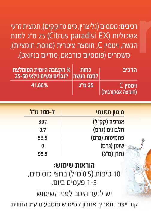 המינון המופיע על המוצר הוא: 10 טיפות (0.5 מ"ל) בחצי כוס מים, 1-3 פעמים ביום